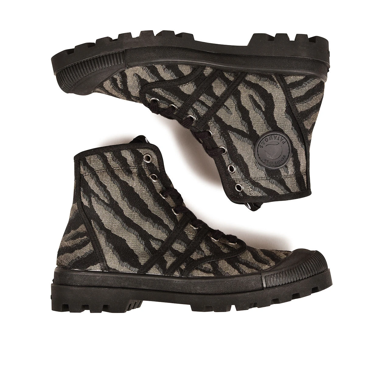 Optez pour l’originalité avec la boots pour femme Authentique zébré qui cette saison se pare d’un tissu fabriqué en France. Les motifs zébrés sont très tendances et apportent la touche girly à votre look. C’est une chaussure pensée pour votre confort grâce à sa semelle crantée légendaire.