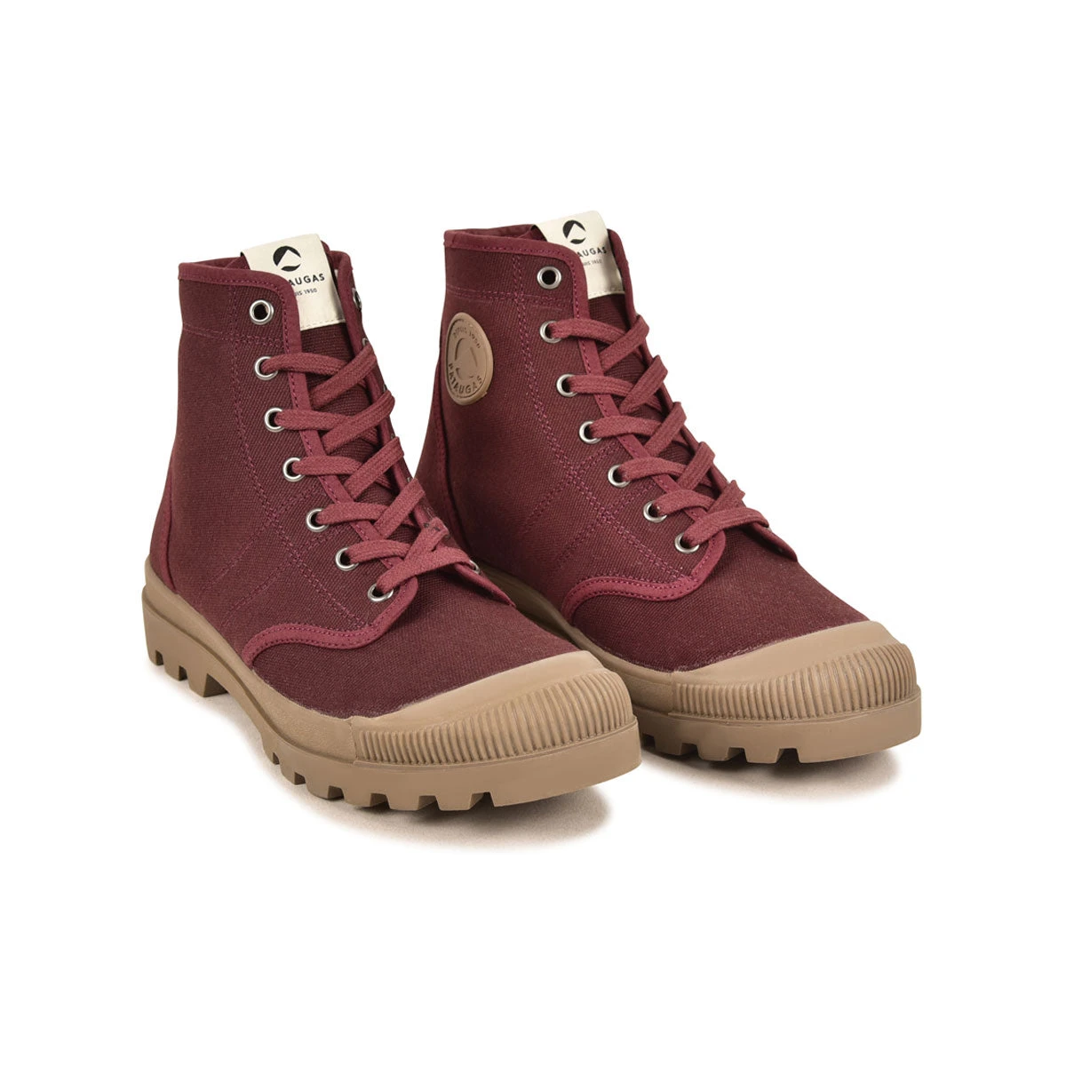 La boots en toile iconique l’Authentique se décline cette saison avec une toile recyclée confectionnée en Espagne et montée sur une semelle vulcanisée en caoutchouc naturel. Sa doublure est également en coton recyclée ce qui fait de cette chaussure pour femme un produit respectueux de son environnement et éco-responsable. Sa couleur bordeaux est idéale pour apporter une touche de chaleur à votre tenue du jour.