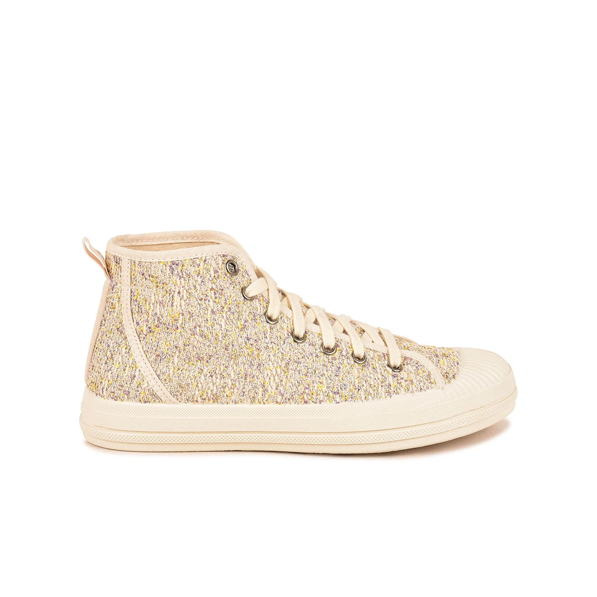 Découvrez notre basket femme ETCHE avec un tout nouveau tissus bouclette raffiné tissé en Espagne inspiré des codes du design et de l’ameublement, le jeu de fils multicolore délicat apporte douceur et sophistication couleur lilas. Cette basket en coton recyclé est très tendance, vous apportera confort et légèreté lors de vos balades estivales grâce à sa tige haute et sa semelle striée. Montée sur une semelle en caoutchouc naturel, permet à cette une basket d’être plus flexible et plus souple. Petit plus, sa semelle intérieure est amovible ce qui est très pratique si vous souhaitez y placer les vôtres.