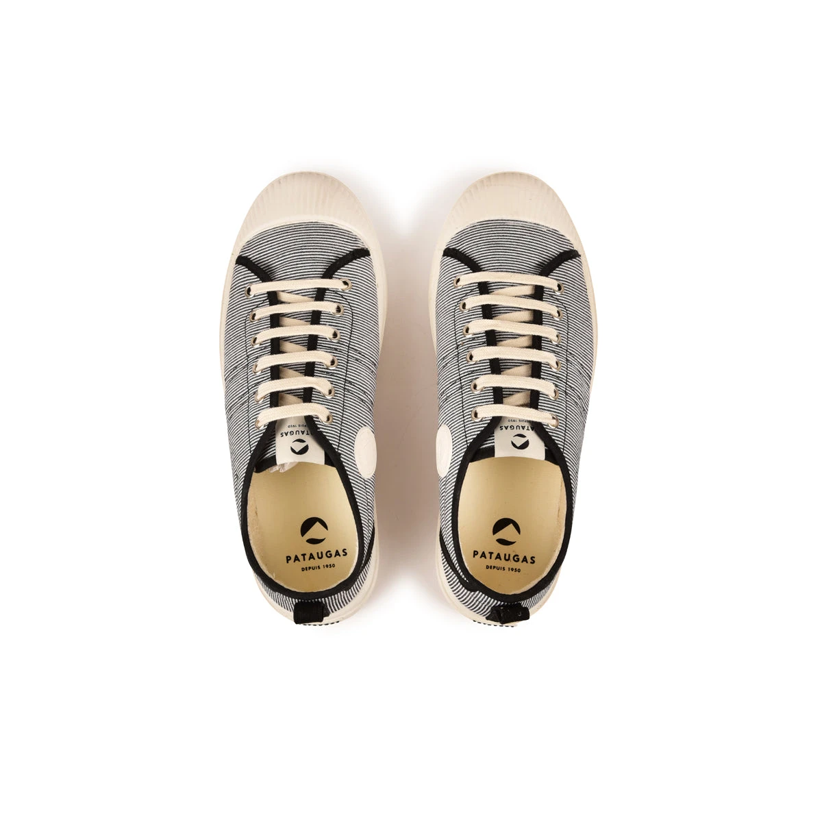 Craquez pour la basket homme ETCHE, la chaussure en toile légère et très confortable. Sa tige est composée d’un tissu en toile rayé blanc et noir et montée sur une semelle injectée en caoutchouc naturel. Ce procédé permet à la semelle de conférer plus de confort et de légèreté dans votre marche. Sa semelle intérieure est anatomique et s’enlève très facilement afin d’y placer vos propres semelles si vous le souhaitez.